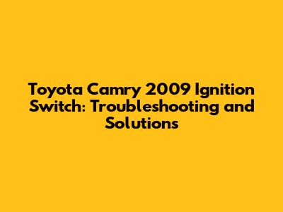 Toyota Camry 2009: Ignition Switch Problems & Solutions