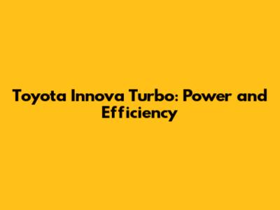 Toyota Innova Turbo: Power And Efficiency