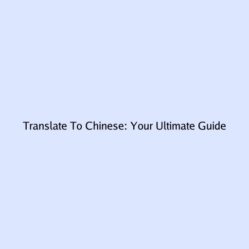 Translate To Chinese: Your Ultimate Guide
