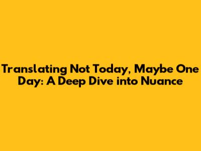 Hey everyone! Ever come across a phrase that just feels right, but you're not quite sure how to translate it perfectly? You know, those little gems of language that carry so much unspoken emotion? Well, today, we're diving deep into one of those: "not today, maybe one day." It’s a phrase brimming with a mix of defiance, hope, and a touch of resignation, isn't it? Translating it isn't just about swapping words; it's about capturing that complex feeling, that vibe, for a different audience. It’s like trying to explain a really good meme to your grandma – you need to get the essence across, not just the literal pixels. And guys, that’s the real magic of translation, right? It’s about bridging cultures and understanding the subtle shades of human expression. We're going to unpack the layers of this particular phrase, explore different contexts where you might hear or use it, and then figure out the best ways to render it into other languages so that the original sentiment shines through. So, grab your favorite beverage, settle in, and let's get ready to explore the fascinating world of linguistic artistry. This isn't just about words; it's about conveying feelings, intentions, and the universal human experience of hope tinged with a bit of present-day reality. We’ll be looking at how different languages tackle this, the cultural nuances involved, and how to ensure your translation doesn't just say the words, but truly means them. It’s a journey, and I’m stoked to have you along for the ride!