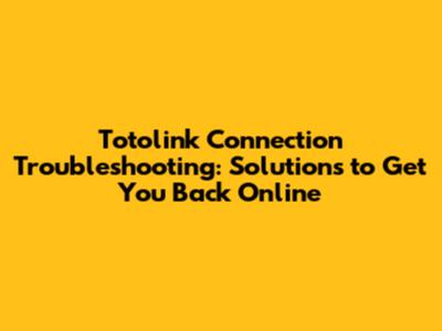 Troubleshooting: Fixing Totolink Connection Issues