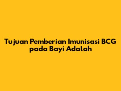 Tujuan Utama Imunisasi BCG pada Bayi