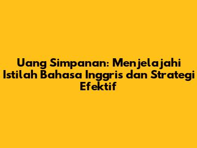 Uang simpanan bahasa Inggrisnya apa, sih? Pertanyaan ini mungkin sering muncul, terutama bagi kalian yang sedang belajar bahasa Inggris atau ingin mencari informasi keuangan dalam bahasa asing. Dalam artikel ini, kita akan membahas secara tuntas mengenai istilah uang simpanan dalam bahasa Inggris, serta memberikan tips dan strategi jitu untuk mengelola uang simpanan agar lebih efektif. Jadi, siap-siap untuk menggali lebih dalam, guys!