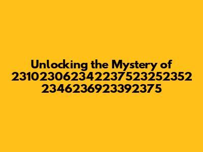 Hey guys! Ever stumbled upon a string of numbers that looks like pure gibberish, like this 231023062342237523252352 2346236923392375? You're not alone! It's easy to get totally stumped when faced with a sequence like this. What could it possibly mean? Is it a secret code? A misplaced serial number? A glitch in the matrix? Well, today, we're going to dive deep and try to make some sense of it. We'll explore potential origins, common contexts where you might find such alphanumeric puzzles, and strategies for deciphering them. Buckle up, because we're about to embark on a journey to demystify this numerical enigma. Understanding what these seemingly random numbers represent can open up a whole new world of information, whether it's related to technology, data, or even historical records. We'll break down the components, look for patterns, and consider the various fields where such specific number strings are prevalent. So, if you're curious and ready to tackle this challenge, stick around, and let's figure out what 231023062342237523252352 2346236923392375 is all about together!