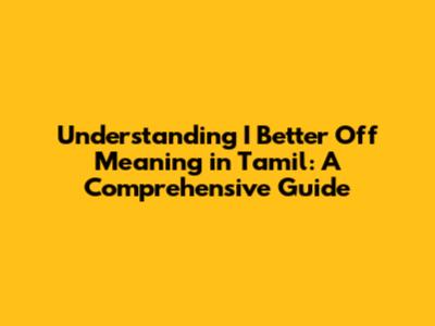 Understanding 'I Better Off' Meaning In Tamil: A Comprehensive Guide