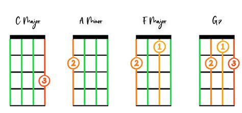 Next up, the C Major chord. This one requires a bit more stretching for some beginners. Place your ring finger on the 3rd fret of the A string, your middle finger on the 2nd fret of the D string, and your pinky finger on the 1st fret of the B string. You’ll strum from the A string down. This chord has a lovely, clear sound.