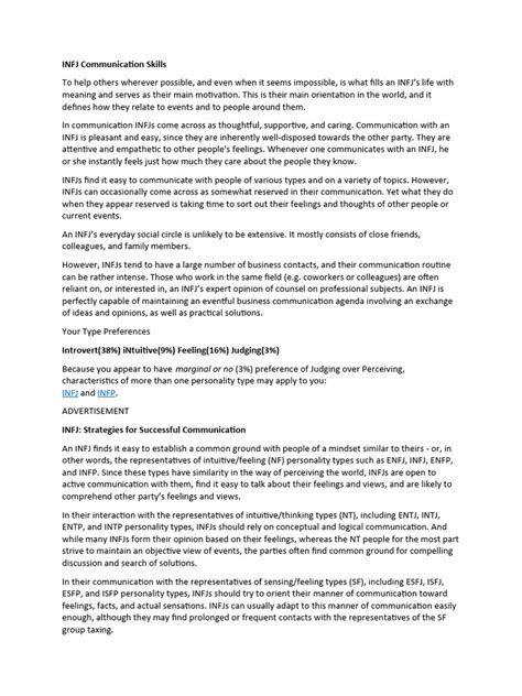 So, you’ve got an INFJ-T in your life, and you want to communicate with them more effectively? Awesome! Understanding their unique style is the first step towards building stronger, more meaningful connections . These individuals value authenticity, depth, and genuine understanding, so tailoring your approach can make a world of difference. First off, listen actively and empathetically . INFJ-Ts often put a lot of thought into what they say, and they appreciate it when others do the same. When they speak, give them your full attention. Try to understand the underlying emotions and intentions behind their words, not just the literal meaning. Ask open-ended questions that encourage them to elaborate, like “Can you tell me more about how that makes you feel?” or “What are your thoughts on the long-term implications of this?” This shows you value their perspective and are willing to engage on a deeper level. Secondly, be patient and allow them space . As we’ve discussed, the ’T’ in INFJ-T can mean they’re sensitive and self-critical. They might need time to process their thoughts and feelings before they can articulate them clearly. Don’t pressure them to respond immediately. Sometimes, a thoughtful silence is more productive than a rushed answer. Let them know it’s okay to take their time, and that you’re there to listen whenever they’re ready. Thirdly, offer constructive feedback gently and privately . If you need to address something with an INFJ-T, do so with kindness and tact. Avoid public criticism, as this can be particularly difficult for them to process. Frame your feedback as observations or suggestions, focusing on the behavior or situation rather than making personal attacks. For example, instead of saying, “You were wrong about that,” try, “I noticed that when X happened, it led to Y. Perhaps next time, we could consider Z?” This approach respects their feelings and encourages growth without triggering defensiveness. Fourthly, engage in meaningful conversations . INFJ-Ts thrive on discussions that go beyond superficial small talk. They love exploring ideas, discussing values, and delving into the ‘why’ behind things. Share your own thoughts and feelings openly and honestly, and invite them to do the same. Topics related to personal growth, philosophy, social issues, or future aspirations are often great starting points. Finally, show appreciation for their insights . When an INFJ-T shares a particularly insightful observation or offers a helpful perspective, acknowledge it. Let them know you value their input and how it has helped you. This kind of validation is incredibly important for them and encourages them to continue sharing their unique gifts. By adopting these communication strategies, you’ll not only build a stronger rapport with the INFJ-Ts in your life but also unlock the incredible depth and wisdom they have to offer. It’s all about creating a space of trust, respect, and mutual understanding, guys!