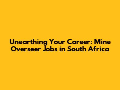 Unearthing Your Career: Mine Overseer Jobs In South Africa
