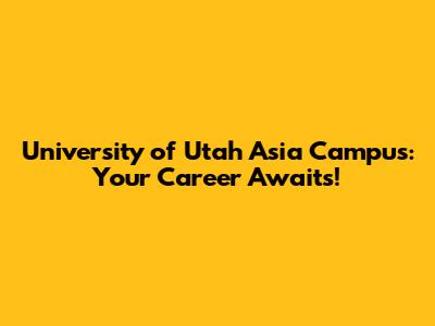 University Of Utah Asia Campus: Your Career Awaits!