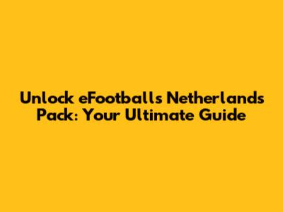 Unlock EFootball's Netherlands Pack: Your Ultimate Guide