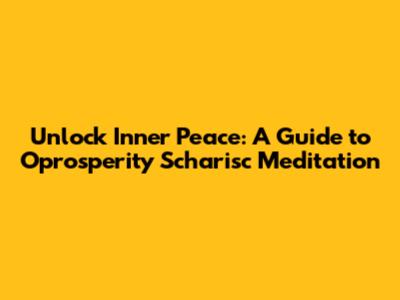 Unlock Inner Peace: A Guide To Oprosperity Scharisc Meditation