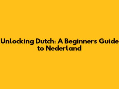 Unlocking Dutch: A Beginner's Guide To Nederland