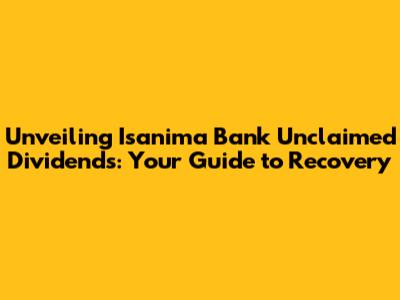 Unlocking Isanima Bank Unclaimed Dividends: A Comprehensive Guide