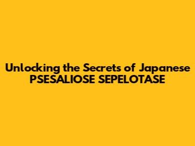 Unlocking The Secrets Of Japanese PSESALIOSE SEPELOTASE