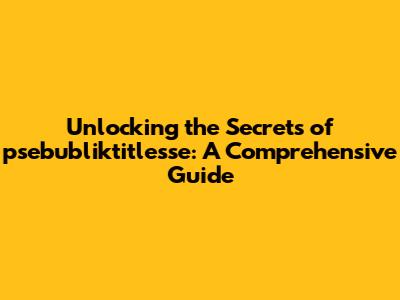 Unlocking The Secrets Of Psebubliktitlesse: A Comprehensive Guide