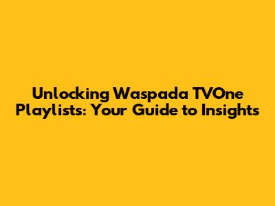 Unlocking Waspada TVOne Playlists: Your Guide To Insights