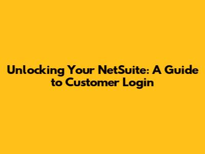 Unlocking Your NetSuite: A Guide To Customer Login