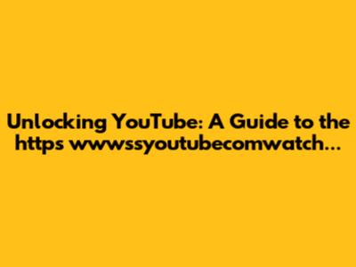 Unlocking YouTube: A Guide To The Https Wwwssyoutubecomwatch...
