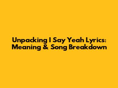 Unpacking 'I Say Yeah' Lyrics: Meaning & Song Breakdown