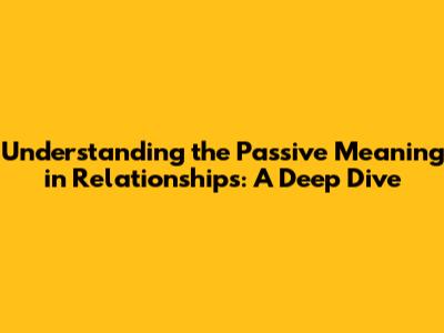 Unpacking Passive Meaning In Relationships
