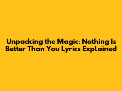 Unpacking The Magic: 'Nothing Is Better Than You' Lyrics Explained