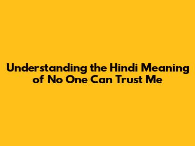 Unveiling 'No One Can Trust Me' In Hindi: Meaning And Impact