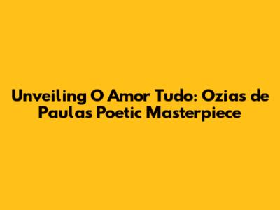 Unveiling 'O Amor Tudo': Ozias De Paula's Poetic Masterpiece