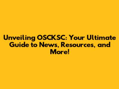 Unveiling OSCKSC: Your Ultimate Guide To News, Resources, And More!