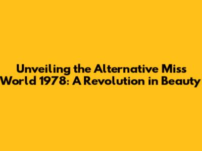 Unveiling The Alternative Miss World 1978: A Revolution In Beauty