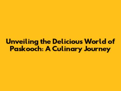 Unveiling The Delicious World Of Paskooch: A Culinary Journey