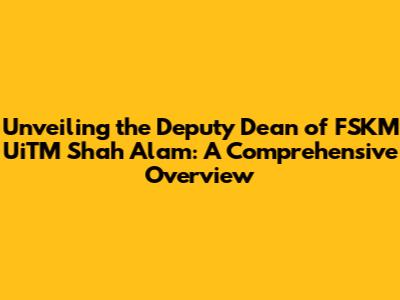 Hey guys! Let's dive into the world of academia and shine a spotlight on a crucial figure at Universiti Teknologi MARA (UiTM) Shah Alam: the Deputy Dean of the Faculty of Computer and Mathematical Sciences (FSKM). This role is super important, so let's explore what it entails, what they do, and why they're so vital to the student experience and the overall success of the faculty. This article aims to provide a comprehensive look at the Deputy Dean of FSKM UiTM Shah Alam, breaking down their responsibilities and highlighting their impact. We'll explore the significance of this role, the qualities needed to excel, and how the Deputy Dean contributes to the vibrant academic environment at UiTM Shah Alam. So, buckle up, because we're about to embark on an insightful journey into the heart of FSKM!