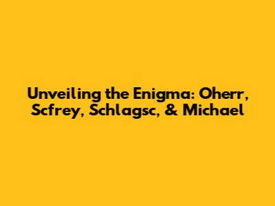 Unveiling The Enigma: Oherr, Scfrey, Schlagsc, & Michael