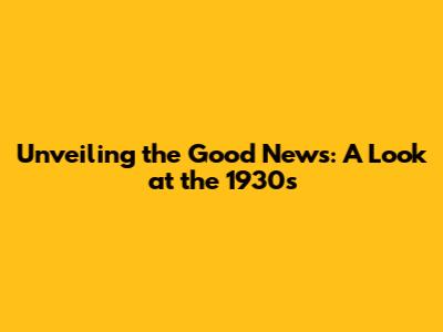 Unveiling The Good News: A Look At The 1930s