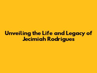 Unveiling The Life And Legacy Of Jecimiah Rodrigues