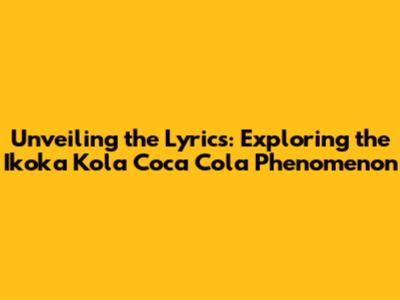 Unveiling The Lyrics: Exploring The 'Ikoka Kola Coca Cola' Phenomenon