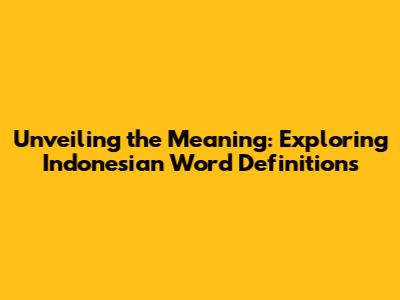 Unveiling The Meaning: Exploring Indonesian Word Definitions