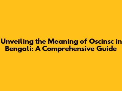 Unveiling The Meaning Of 'Oscinsc' In Bengali: A Comprehensive Guide