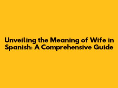 Unveiling The Meaning Of 'Wife' In Spanish: A Comprehensive Guide