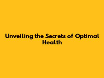 Unveiling The Secrets Of Optimal Health