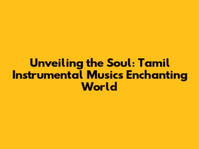 Unveiling The Soul: Tamil Instrumental Music's Enchanting World