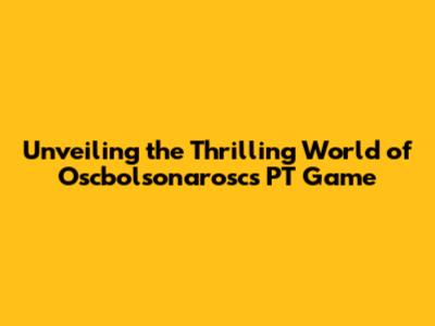 The Unique Aspects of Oscbolsonarosc's PT Game: What Sets It Apart