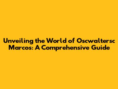 Unveiling The World Of Oscwaltersc Marcos: A Comprehensive Guide