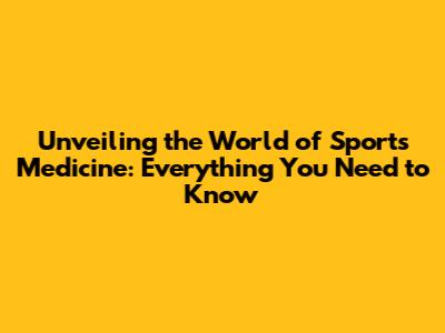 Unveiling The World Of Sports Medicine: Everything You Need To Know
