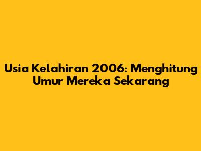 Usia Kelahiran 2006: Menghitung Umur Mereka Sekarang