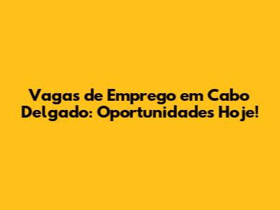 Vagas De Emprego Em Cabo Delgado: Oportunidades Hoje!