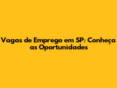 Vagas De Emprego Em SP: Conheça As Oportunidades