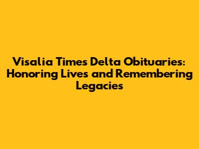 Hey there, folks! Ever found yourself looking for a way to pay your respects or learn more about someone who touched the Visalia community? Well, you've probably stumbled upon the Visalia Times Delta obituaries. They're a really important part of our local newspaper, and they serve as a heartfelt record of the lives lived in our area. Let's dive into what makes these obituaries so special, how you can find them, and why they matter so much to all of us. Trust me, it's more than just a list of names and dates; it's about remembering, celebrating, and connecting with our community.