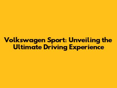 Volkswagen Sport: Unveiling The Ultimate Driving Experience