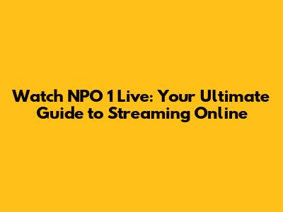 Watch NPO 1 Live: Your Ultimate Guide To Streaming Online