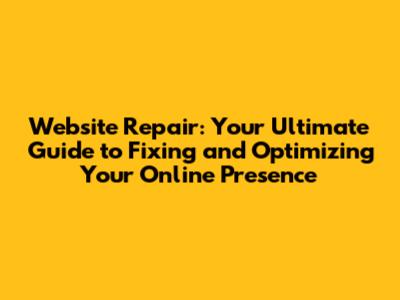 Website Repair: Your Guide To Fixing And Optimizing